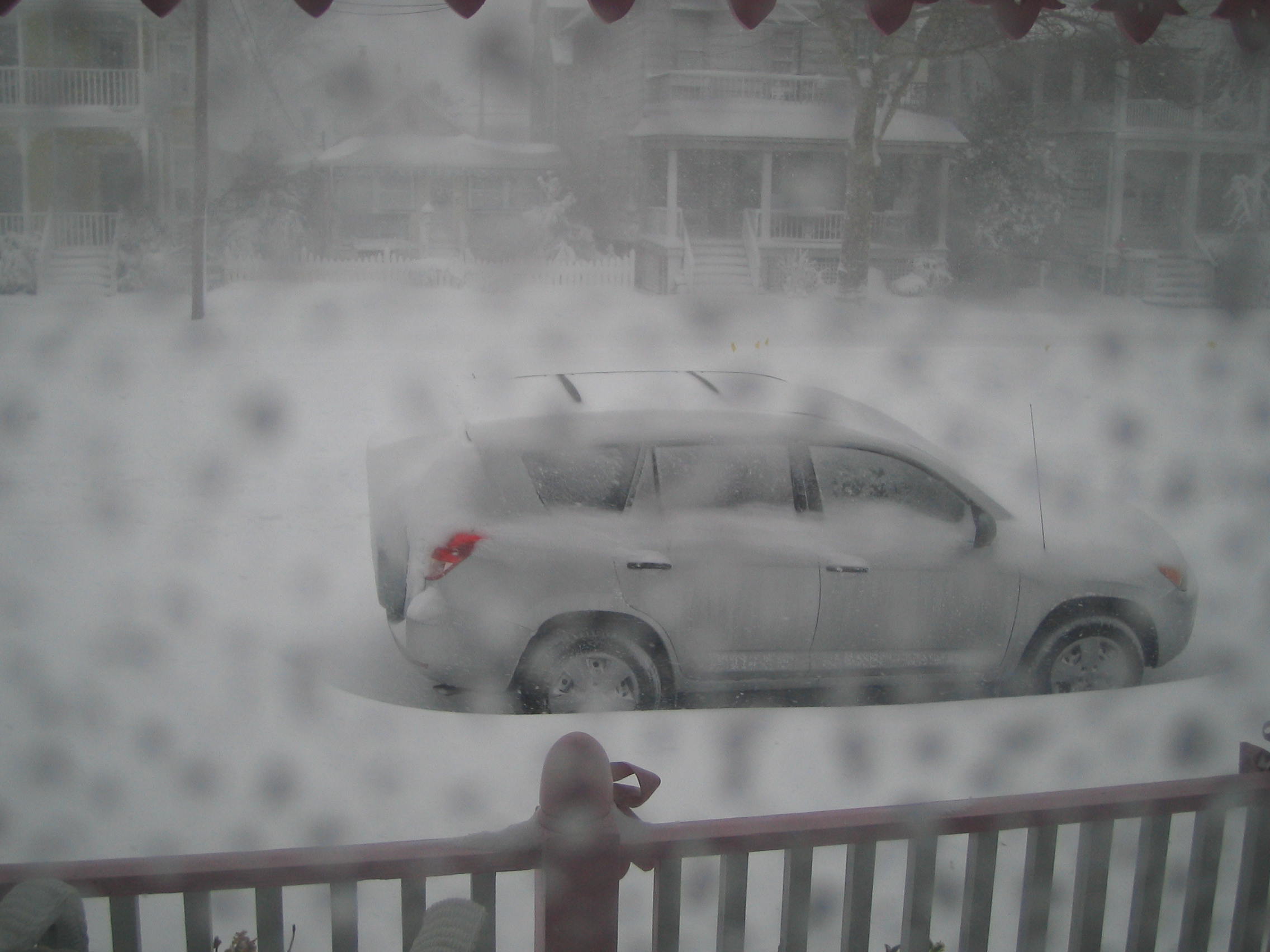 We think we’re going to beat the storm but ha, ha, ha….hubris! The storm gods were waiting for us just as we passed the Newark airport. No nice big soft flakes coming down that usually herald the beginning of a heavy snowfall – NO we are hit square in the face with driving snow smacking the windshield and virtually creating a white-out! I’m a nervous passenger when Peter is driving so right about now, I’m on high alert! While I’m watching the road and trying to keep track of the white lines which have disappeared, I’m also texting my sister-in-law, Juanita who is still in Florida and standing under a star-lit sky. AND she’s now praying for our safe arrival!