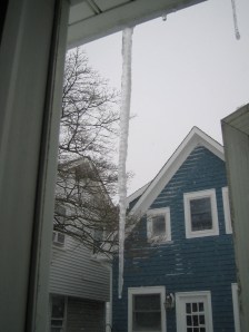 I like being in my cottage during a snow storm, somehow it doesn’t hold the same charm for my city-born-and-bred-apartment-dwelling husband. I’m sure he was thinking of the snow shoveling that would have to be done, me too! Since we didn’t really have any food here, we called in an order to the local Italian restaurant and Pete went to pick it up. I called Juanita and told her we were safe and sound albeit a bit chilled.