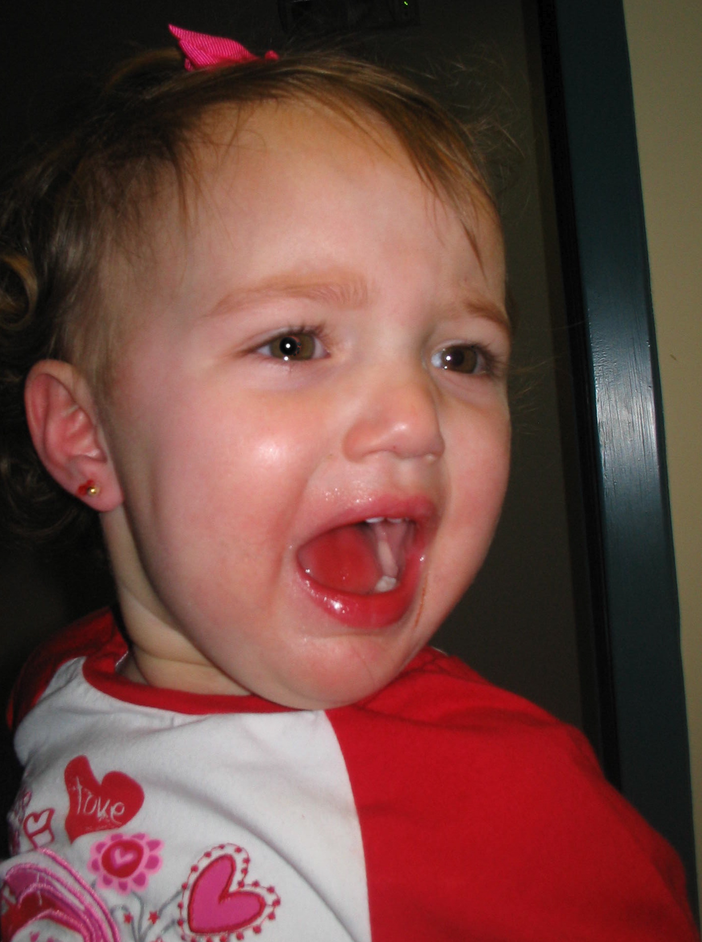 Well we finally did it- Chiara promised me the next time I was here, we would get Finley’s ears pierced. Chiara had tried when Finley was 4 months old but her lobes were just too small, because she is such a little peanut. This afternoon we took Finny and her friend, Lilly to the doctor’s office to get their ears pierced. I thought I was prepared for some crying BUT I wasn’t really prepared for how much Finley would panic, cry and scream. Chiara held her arms tightly and I had to hold her head which she was vigorously shaking as the nurse attempted to do the second ear. And then our worst nightmare was realized – Finny had moved and second ear’s hole was too high and too far back and we both knew it would have to go….and then the choice to take out the earring, let the hole close up and bring her back in a few weeks OR bite the bullet and let the nurse make a third hole. I mean she was already there and she was was already pretty upset and by this time Lilly was screaming bloody murder. Bribes of blow pops and ice cream fell on deaf ears! JP Licks just couldn’t take away the hurt. It hurt us more than Finley but Chiara decided to try for a third hole. OMG Finley was SO NOT HAPPY – She knew what was coming and wanted none of it. WOW am I glad this deed is done. I thought we could have used a drink but really they have laws about bringing babies into bars in Boston so I guess it’s pink ice cream for Finny and peanut butter non fat yogurt for me and Mom.