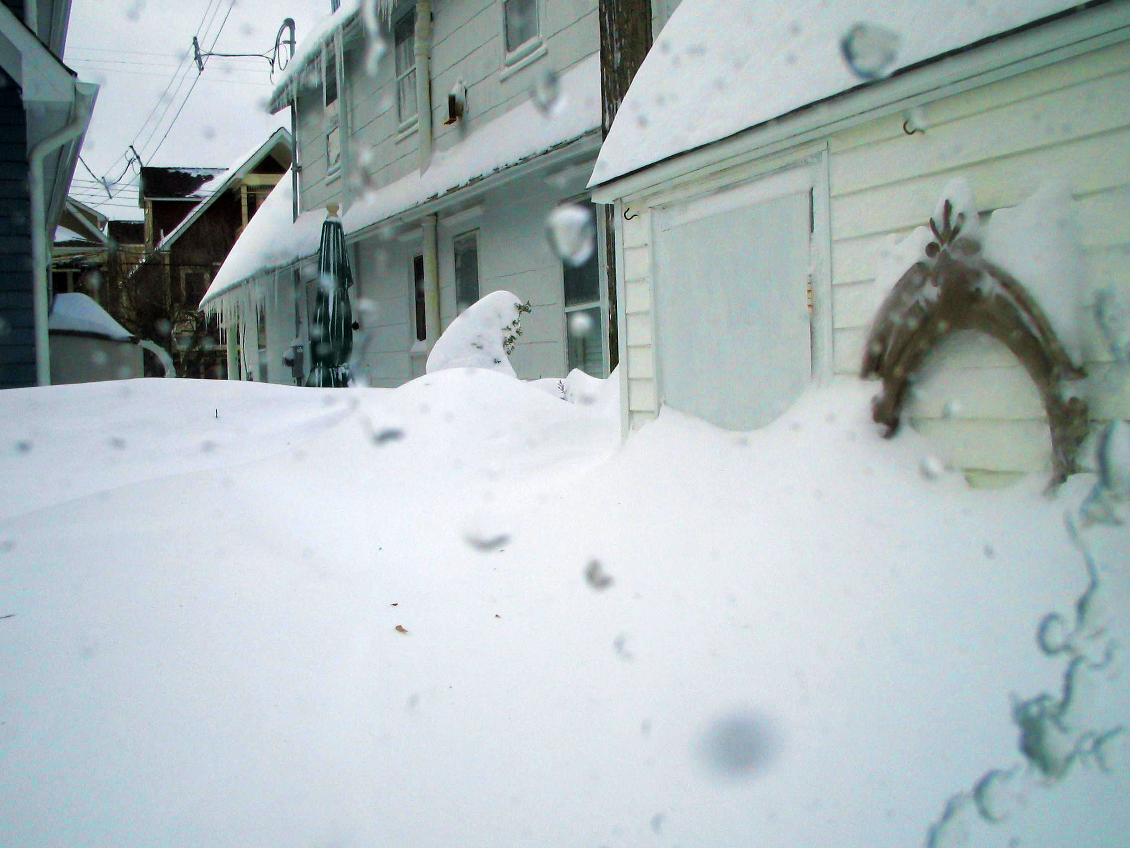 And so the shoveling began. A knock at the door surprised us and it was a young man who offered his services for snow removal. Everybody is a capitalist at heart and his prices were too high for us so we bargained for $20 worth of shoveling – which meant a path from the front porch to the car and single shovel wide clearance along the front sidewalk. It was a good deal for both of us, the snow was very powdery.
